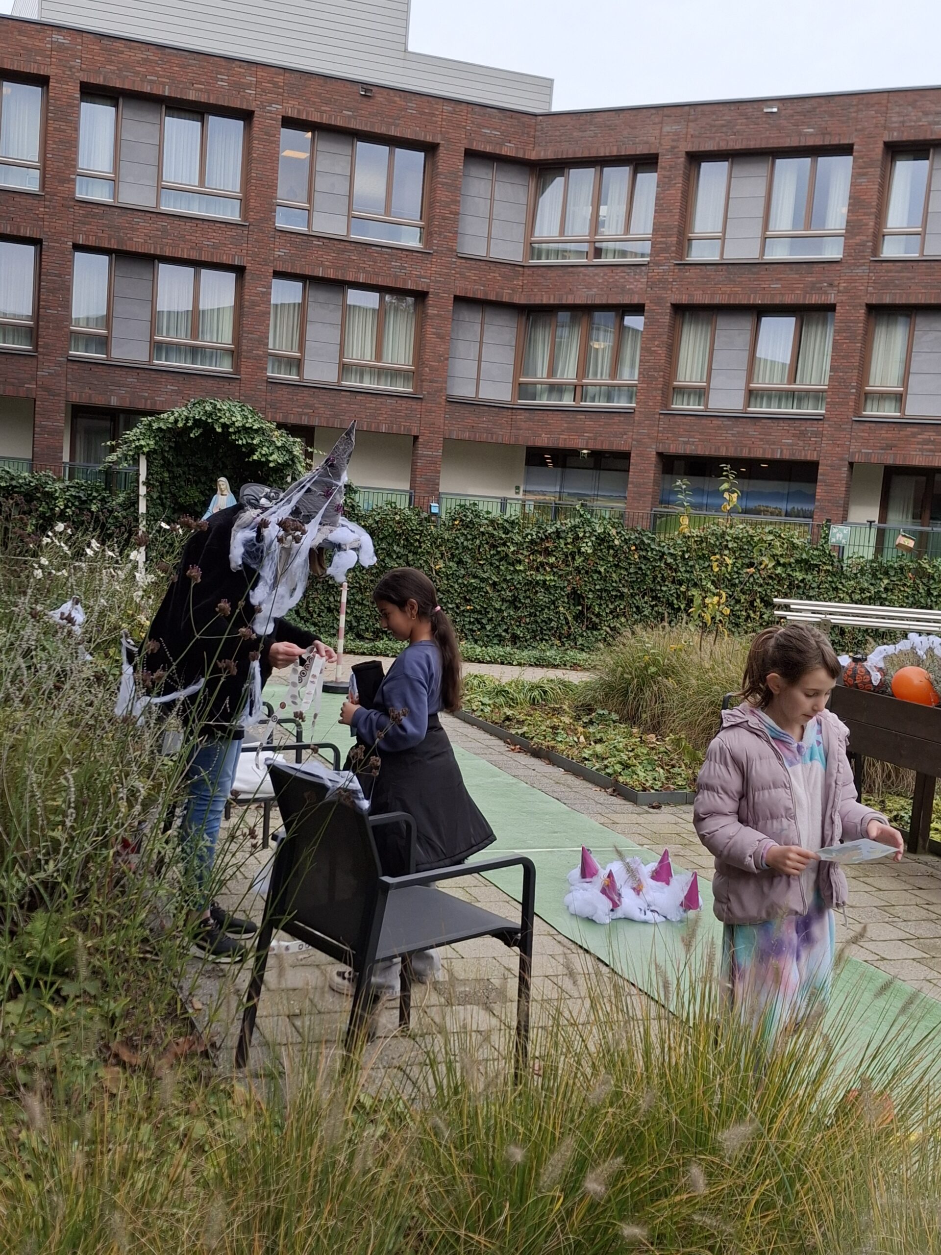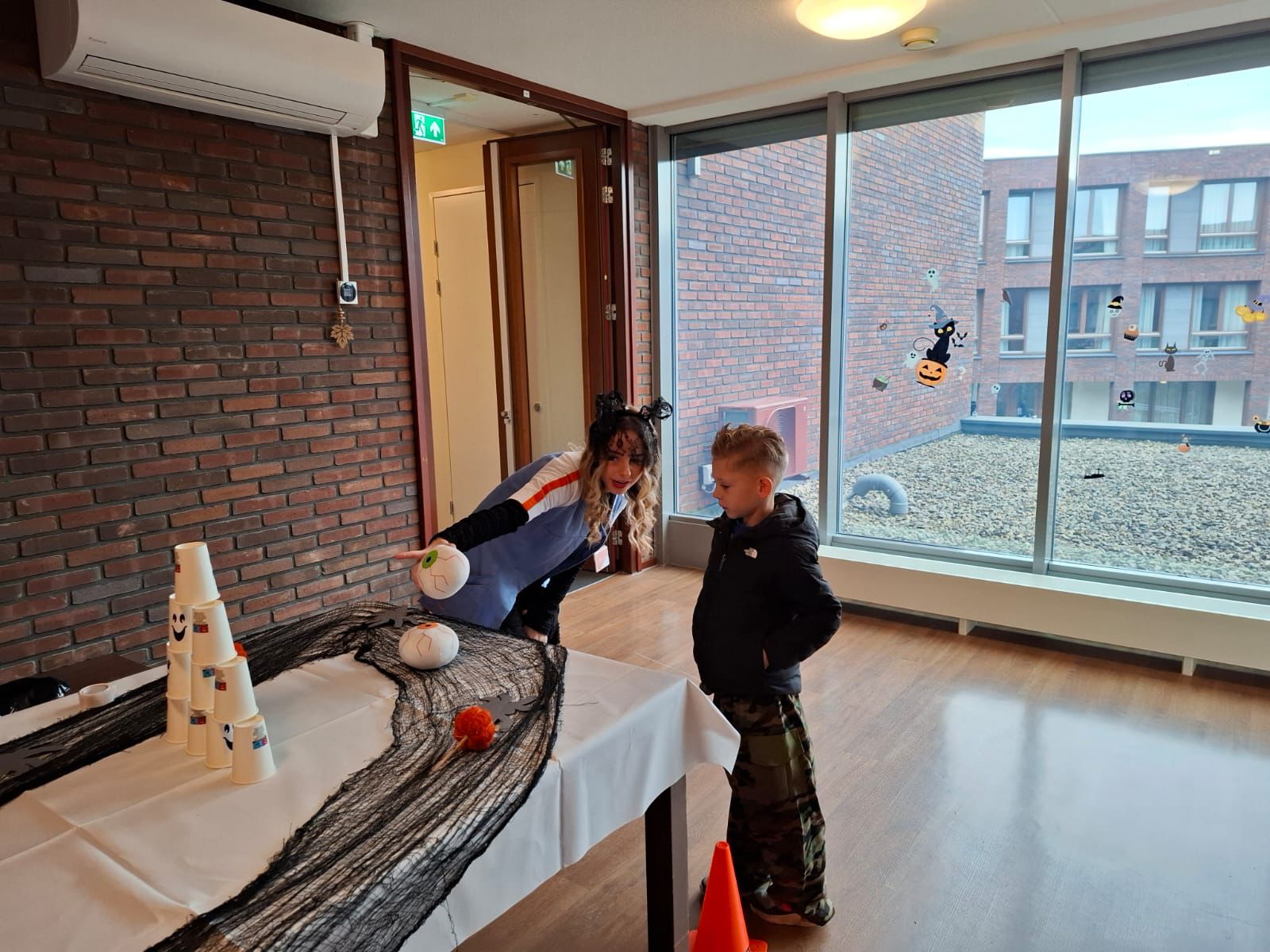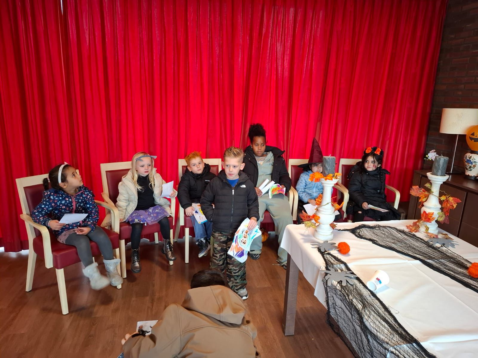 Vrijdag 31 oktober werden wij uitgenodigd door het Oranjehof om bij de ouderen op bezoek te komen. In de ontvangsthal werden wij vriendelijk ontvangen, waarna een aantal activiteiten plaats vonden die ze voor ons hadden klaar gezet. Denk hierbij aan sjoelen, ring werpen, voelen in een griezeldoos etc. Tijdens deze activiteiten ontmoeten wij ook ouderen die er woonden. Een aantal ouderen keken gezellig hoe wij het spel speelden, andere maakten een babbeltje met ons en we mochten zelfs bij een mevrouw op de kamer komen kijken. Het was een leuke en gezellige ochtend met als verrassing een lekker zakje snoep.