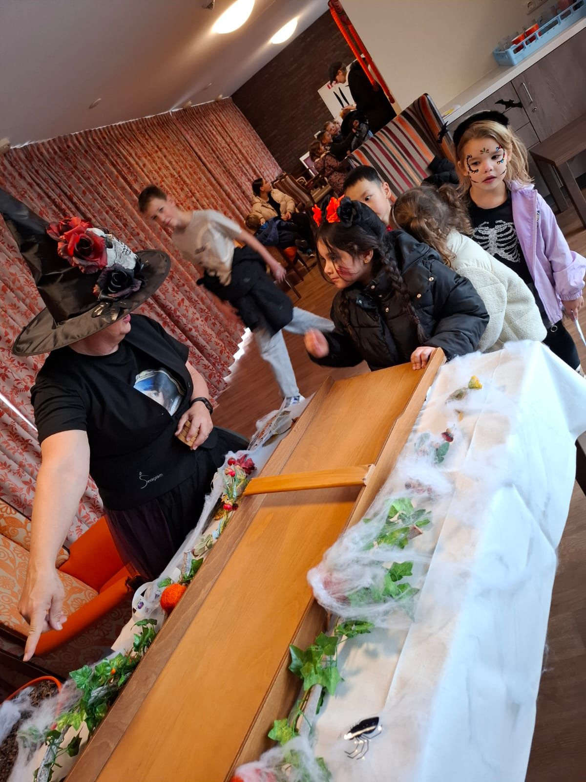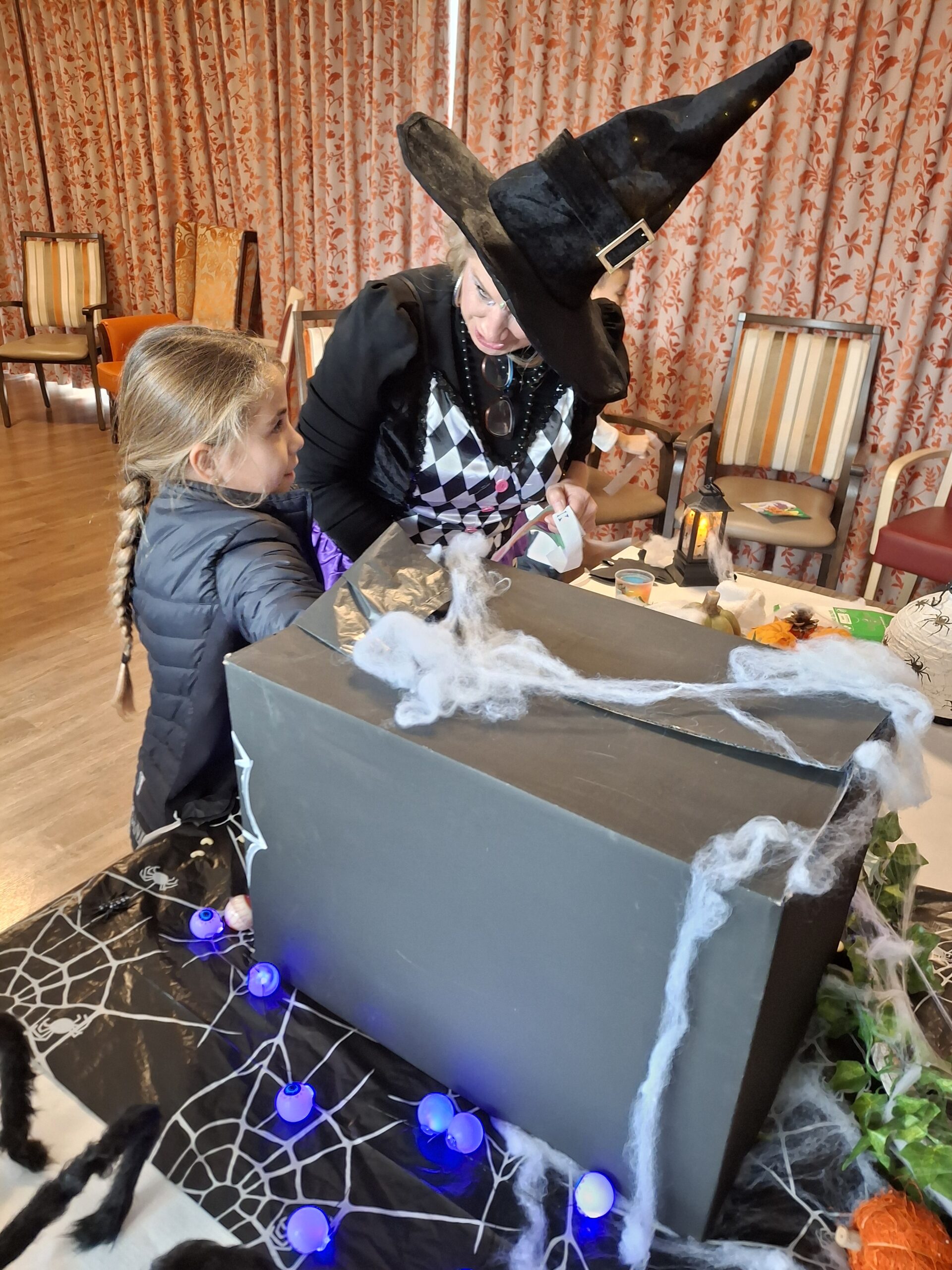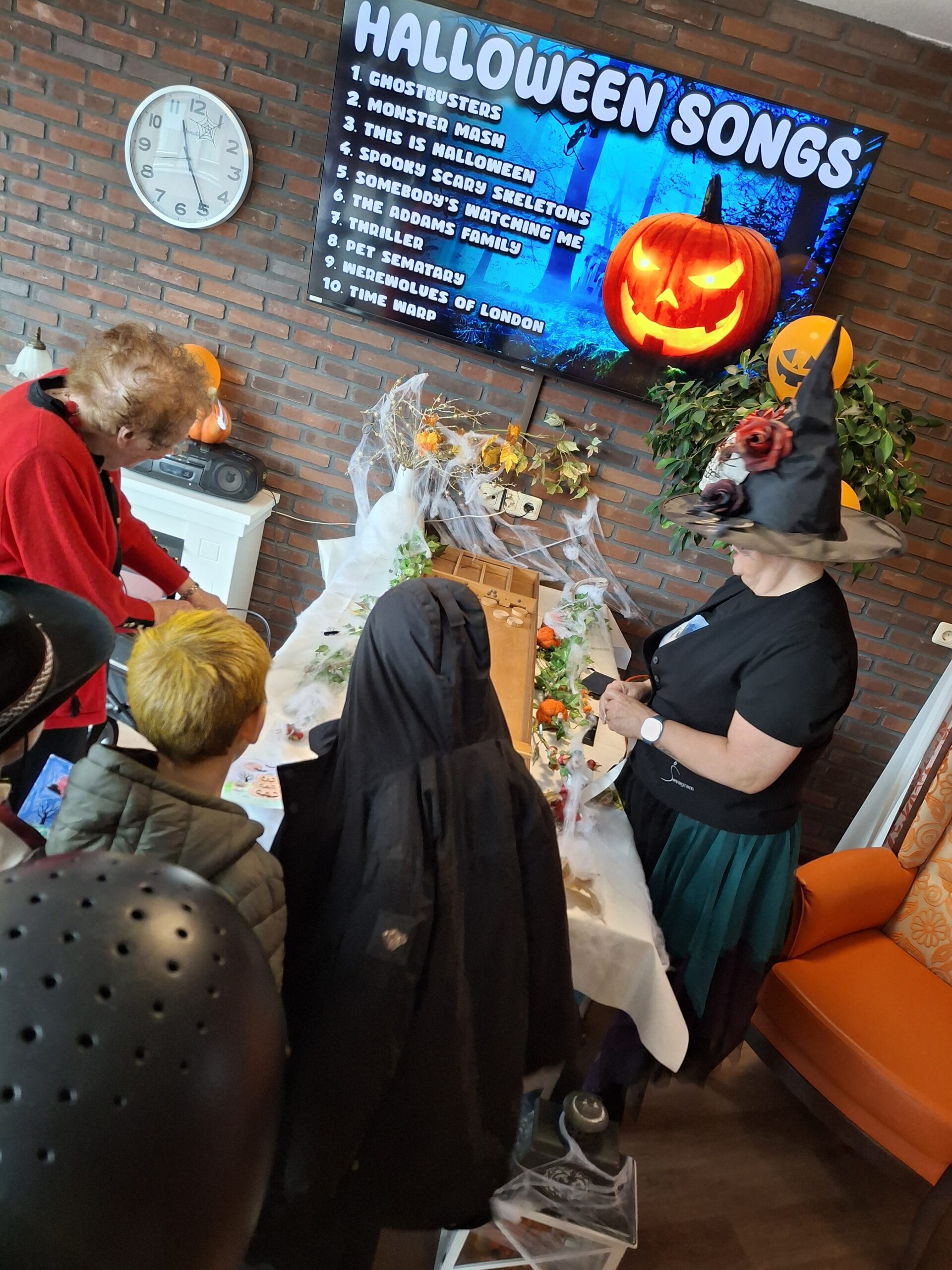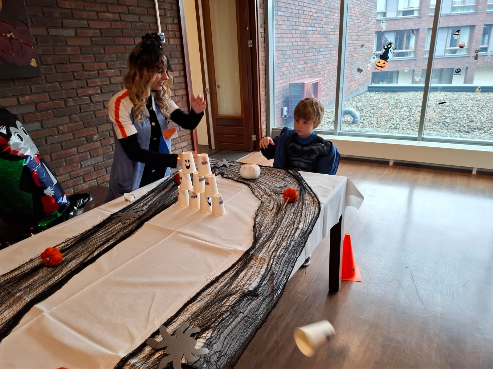 Vrijdag 31 oktober werden wij uitgenodigd door het Oranjehof om bij de ouderen op bezoek te komen. In de ontvangsthal werden wij vriendelijk ontvangen, waarna een aantal activiteiten plaats vonden die ze voor ons hadden klaar gezet. Denk hierbij aan sjoelen, ring werpen, voelen in een griezeldoos etc. Tijdens deze activiteiten ontmoeten wij ook ouderen die er woonden. Een aantal ouderen keken gezellig hoe wij het spel speelden, andere maakten een babbeltje met ons en we mochten zelfs bij een mevrouw op de kamer komen kijken. Het was een leuke en gezellige ochtend met als verrassing een lekker zakje snoep.